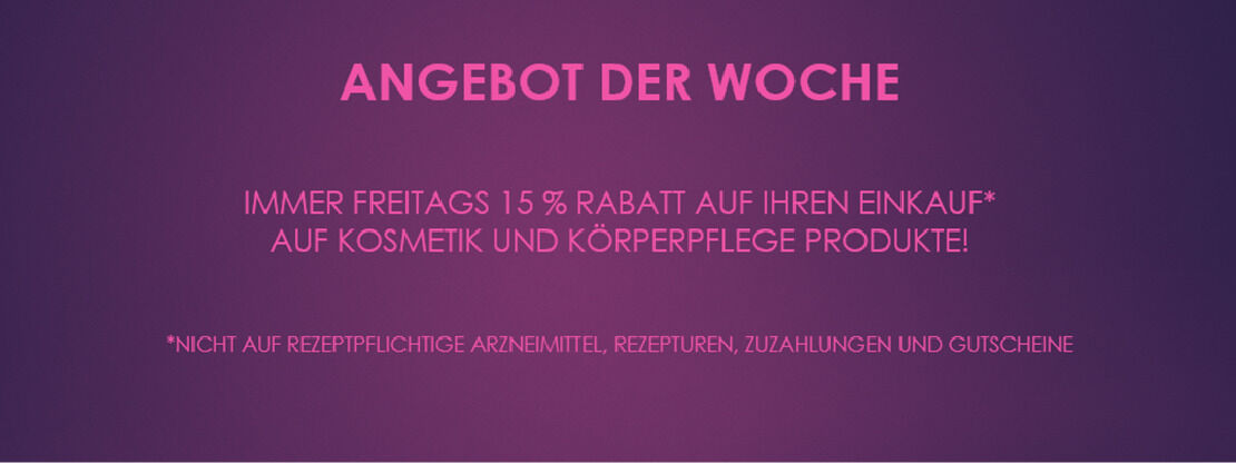 Melden Sie sich hier an und sichern Sie sich Ihren 10% Gutschein* für unsere Apotheke